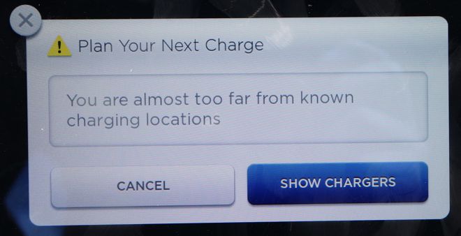 Not long afterwards, the Tesla alerted me with an even more dire warning. These messages that I was about to enter the charging twilight zone did not improve my state of mind.