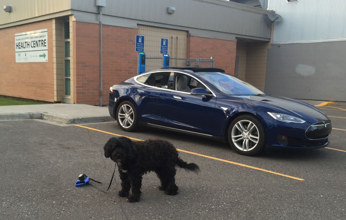 Unfortunately, the Tesla felt the current coming from this charger was “dirty” and dropped the amperage of my charging, so that instead of getting 22 miles per hour of additional charge, I was only getting 13 mph. The second charger produced exactly the same problem. Oh well, I’ll have enough juice to proceed towards Prince George at 2 a.m.